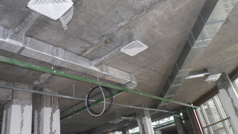 Проектирование, изготовление, монтаж, автоматизация и пуско-наладка системы воздушного отопления, в помещениях производственного цеха, на базе двух воздухонагревателей рекуперативного типа «Тепловей Т-450i». Теплопроизводитель-ностью каждого агрегата 450 кВт.