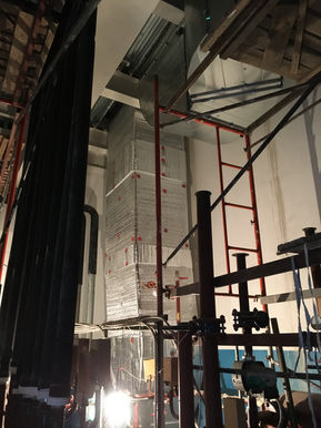 Проектирование, изготовление, монтаж, автоматизация и пуско-наладка системы воздушного отопления, в помещениях производственного цеха, на базе двух воздухонагревателей рекуперативного типа «Тепловей Т-450i». Теплопроизводитель-ностью каждого агрегата 450 кВт.